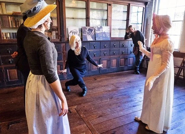 Modsense is a new web series . The premise is that an as yet unpublished Jane Austen falls through a time hole in 1815 London and arrives in 2015 DC at the offices of a lifestyle magazine (Modsense, 200 years old and formerly called Modern Sensibility). Lots of anachronistic humor, she becomes the love advice columnist while working amongst all the characters who will turn up in her as yet unwritten Sense and Sensibility.